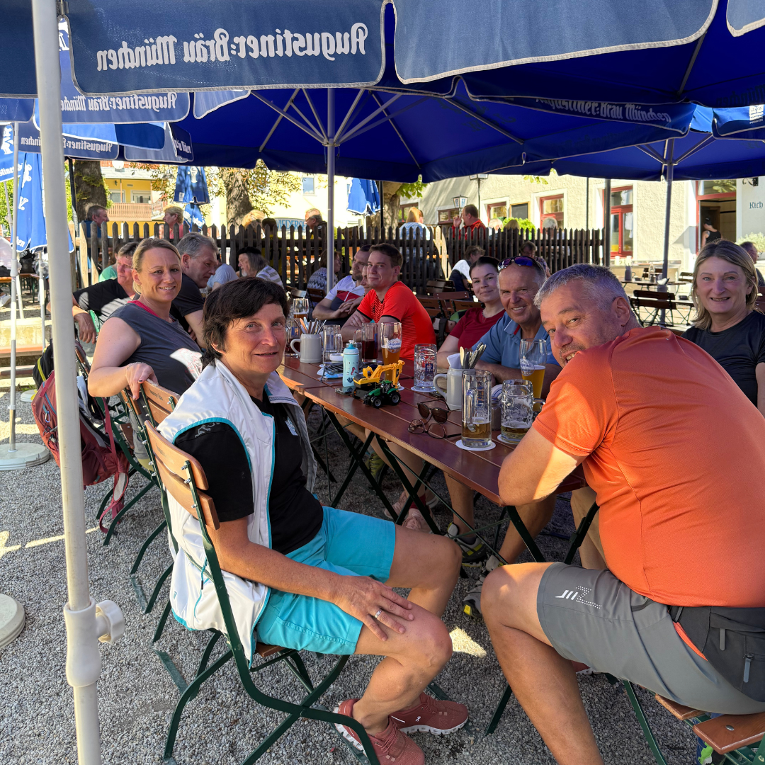 Treffpunkt war um 11.00 Uhr am Sportplatz. Anschließend fuhren wir über Niedersunzing, Feldkirchen und Alburg am Allachbach-Radweg entlang, bis zum Stadtplatz, um anschließend beim Gasthaus Hagen in Sossau eine Rast zu machen. Hier war leider kein Platz mehr frei, darum ging es weiter und es wurde spontan entschieden die Rast im Landshuter Hof zu verschieben. Dort konnten auch die Kleinen am Spielplatz toben. Anschließend machten wir uns auf den Heim. Dabei machten wir einen kurzen Abstecher über Aiterhofen, um an der Aitrach gemütlich nach Hause zu fahren. Am Ende wurde noch ein Abstecher in die Almschänke nach Wackerstall beschlossen, um den Tag gemütlich zu beenden.